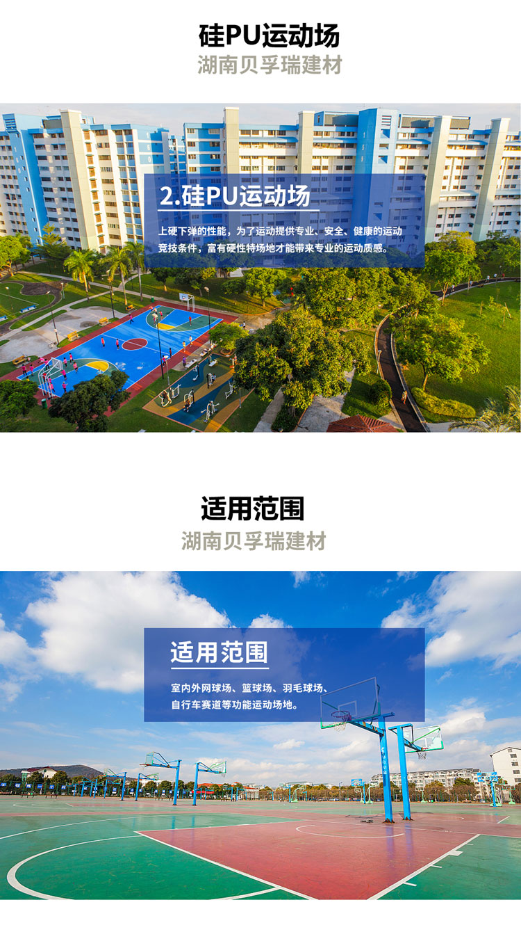 、超強(qiáng)的耐磨性:硅PU面層采用添加硅樹脂顆粒做法,其結(jié)構(gòu)特征恒久穩(wěn)定不變,軟硬適中,耐磨性能滿足長期高使用頻率的需要。
